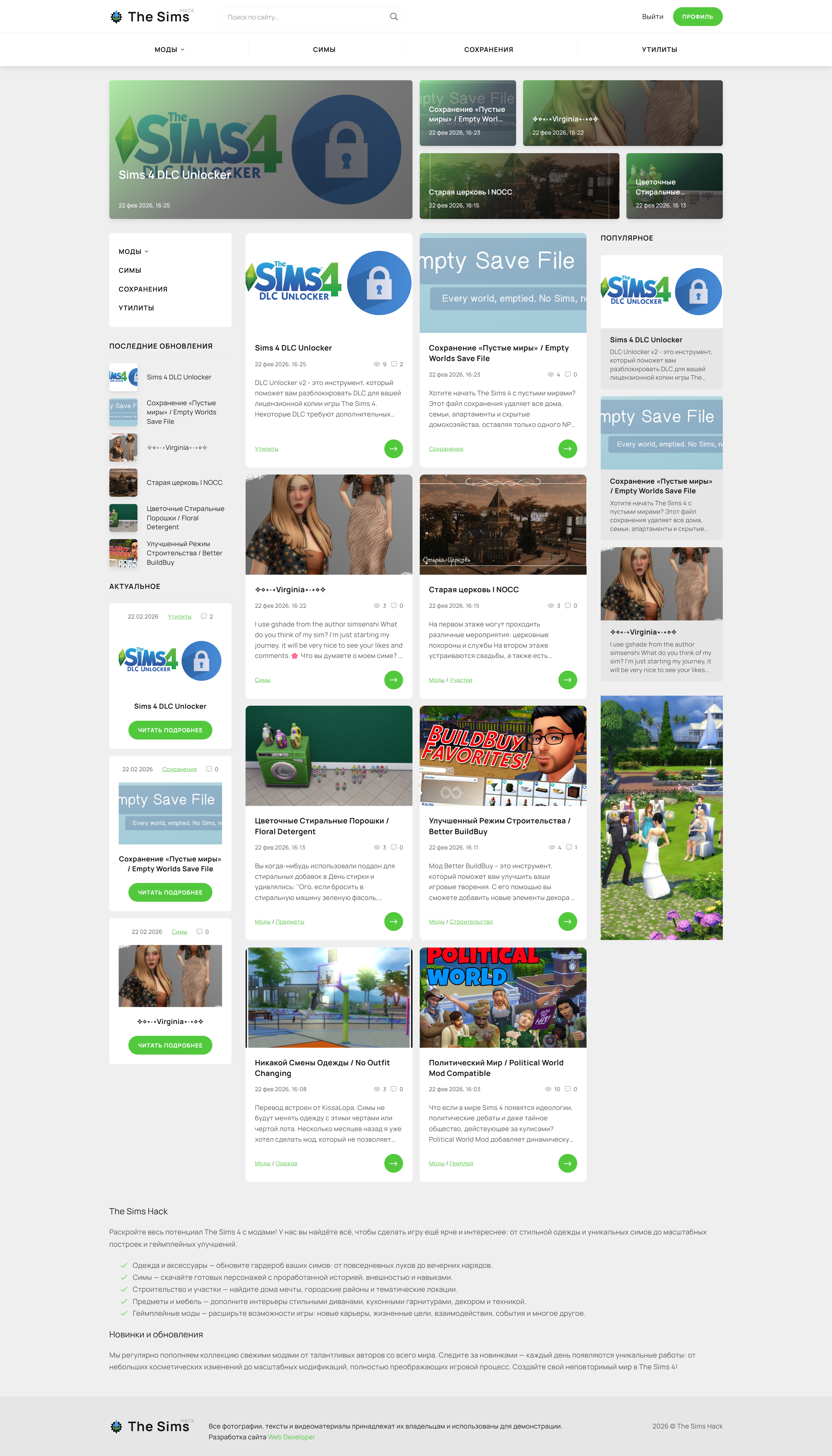 В демоверсии представлен готовый новостной блог по видеоигре.