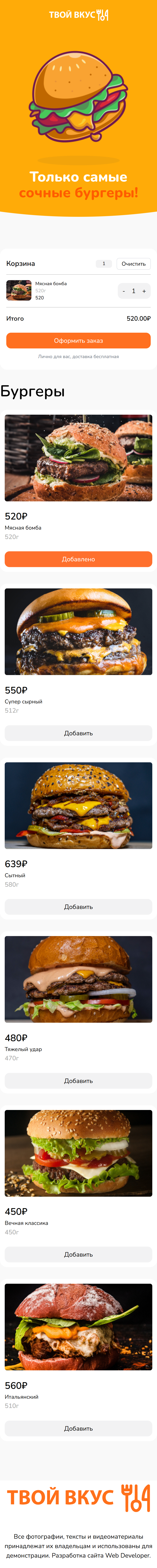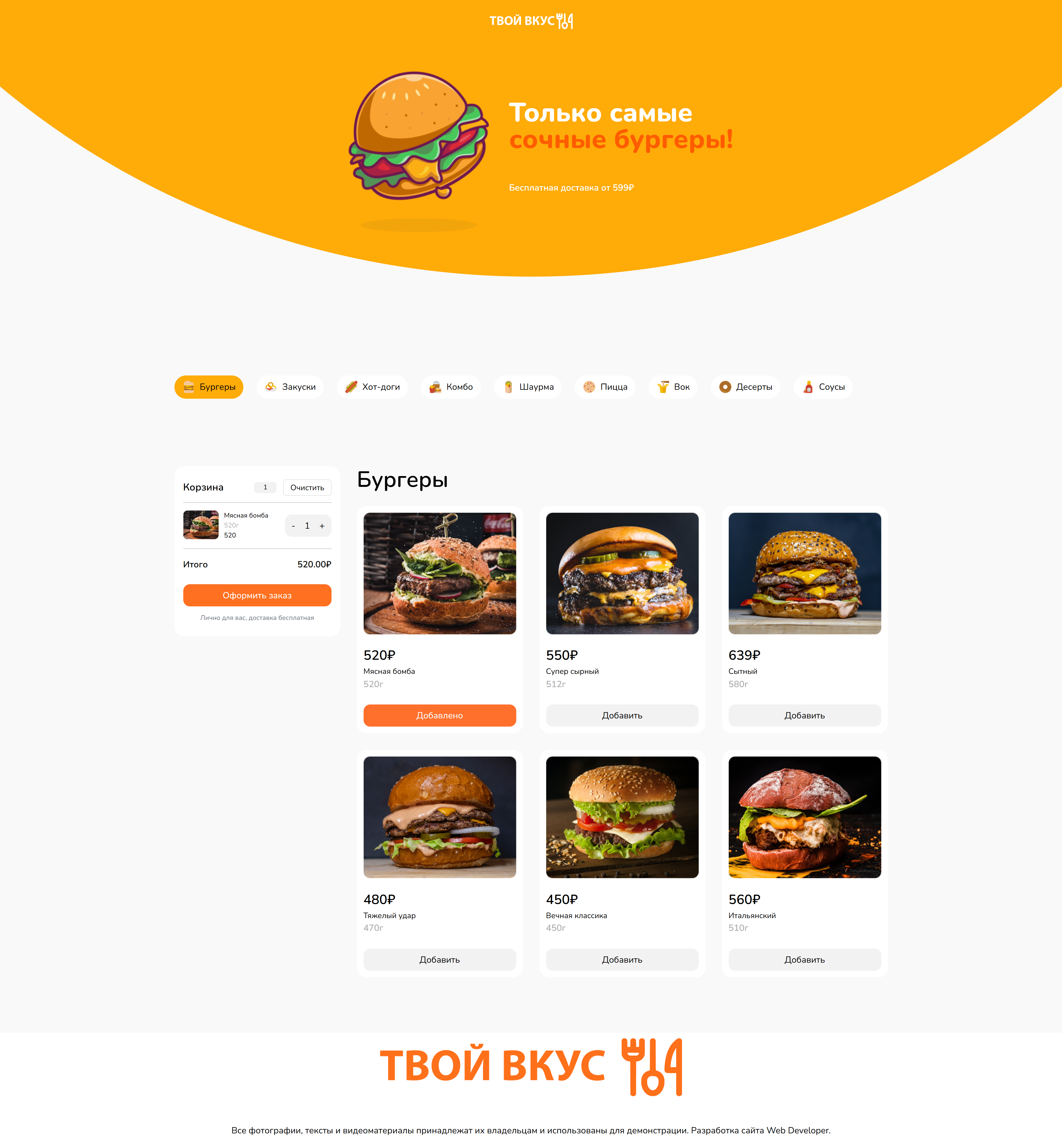 В демоверсии представлен готовый интернет-магазин ресторана.